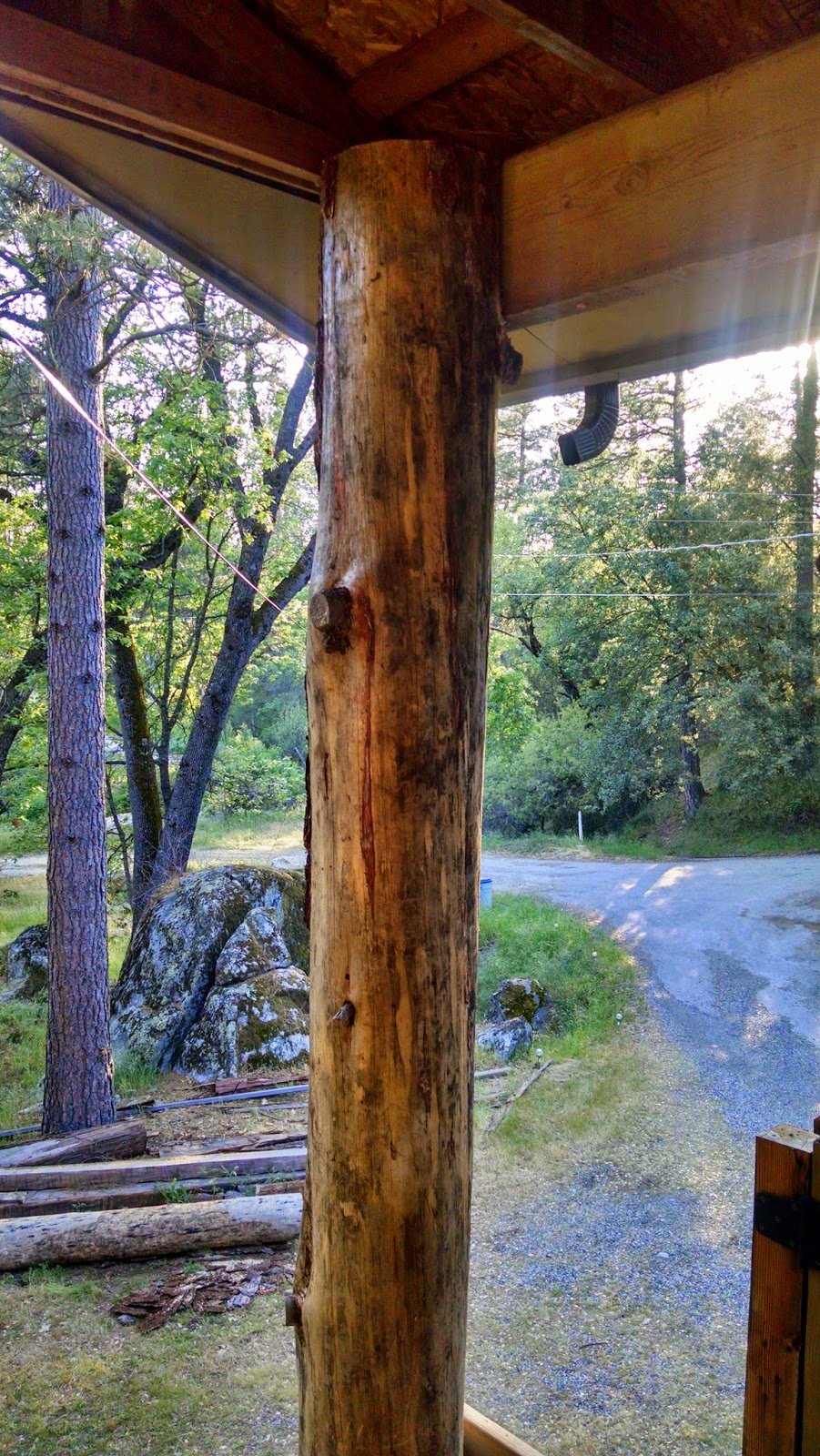 We had to cut the logs into two sections using a Stihl chainsaw, hoist them up with rope and pulleys via "woman" power and pickup truck power. It was not "measure twice, cut once," but it was "measure thrice, cut once."